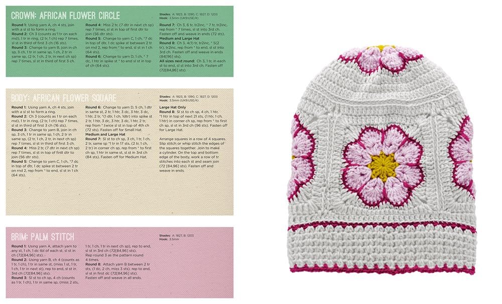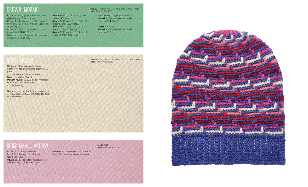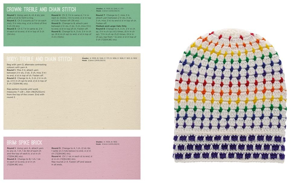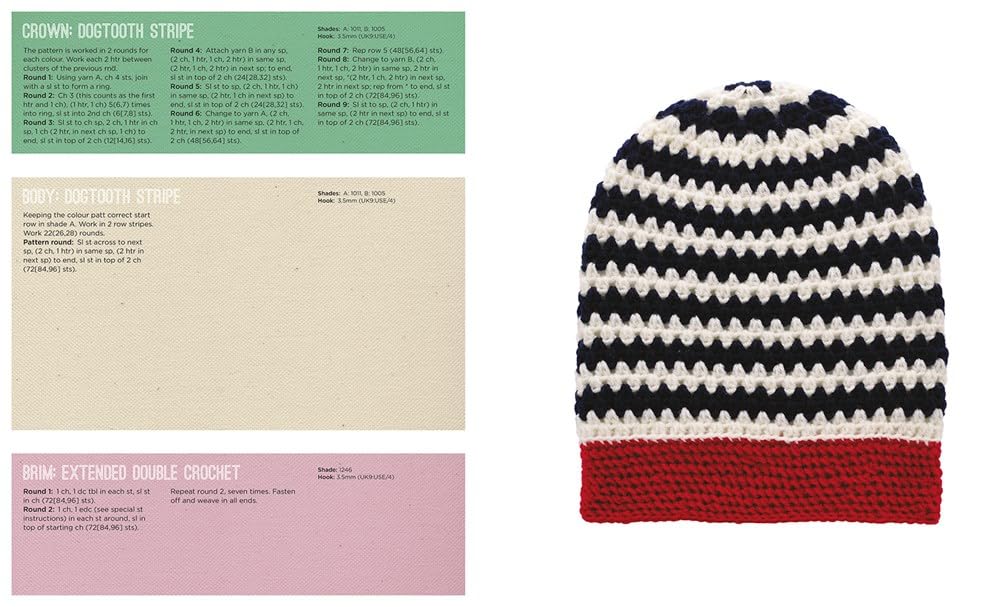 This interactive crochet book contains photographs of different hat brims, bodies and crowns, equating to 10,626 ways to create unique hat patterns. Once you’ve chosen your design, turn over the pages for easy-to-use instructions and guidance, and you can then use the handy embellishments section to add extra features to any basic design.