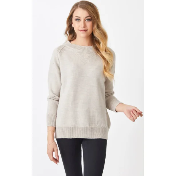 Aklanda’s Merino boyfriend sweater is one of our coziest sweater ever. It offers a heavy-weight stitch knit and a stylish pattern all in one. It features a detailed wider neckline and a slightly nipped waist rib. Our extensive colour range will impress, why not have 2 colours for every occasion.