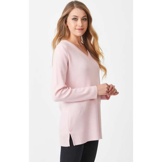 Aklanda’s Merino long v sweater w splits is classic mid-weight stitch knit that is great to wear all year round, it provided comfort and class. It features a tubed V/neck trim and side splits with a slightly nipped waist rib. Our extensive colour range will impress, why not have 2 colours for every occasion.