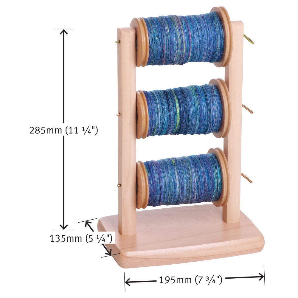 Holds 3 standard, sliding hook flyer or jumbo bobbins.