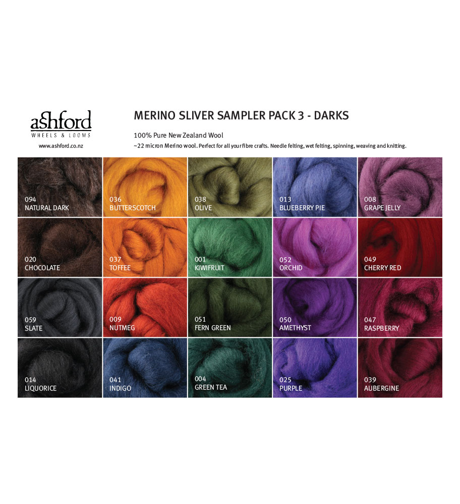 Ashford Merino Roving 21 colour Pack Darks