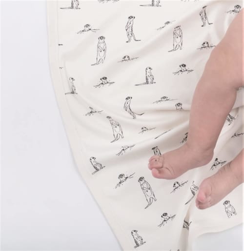 100% Certified Organic Cotton & Dyes | Hand Illustrated Meerkat Print | Australian Designed | Durable Jersey Knit Fabric | 100 X 100cm
