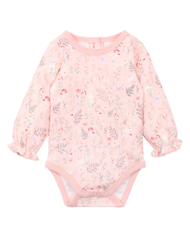 This practical long sleeve bodysuit features our sweet fairy garden print and is the perfect basic for layering on your little one. Made from 100% organic cotton, this piece looks great under our Ciara cord bodysuit.