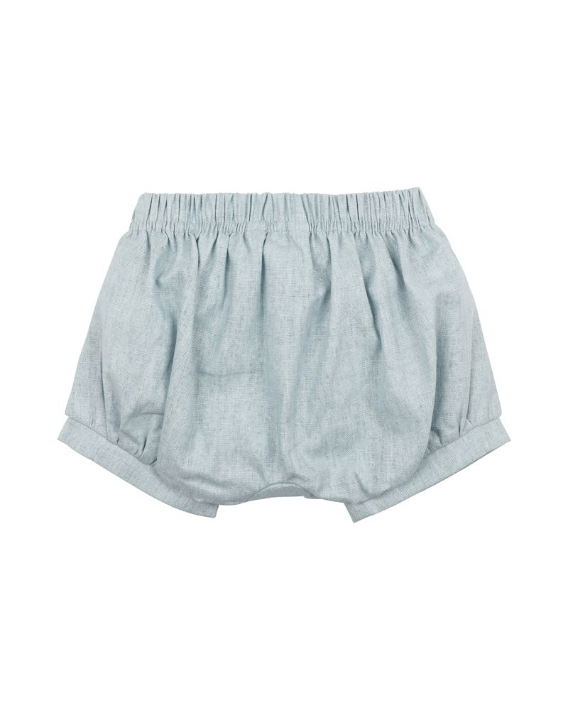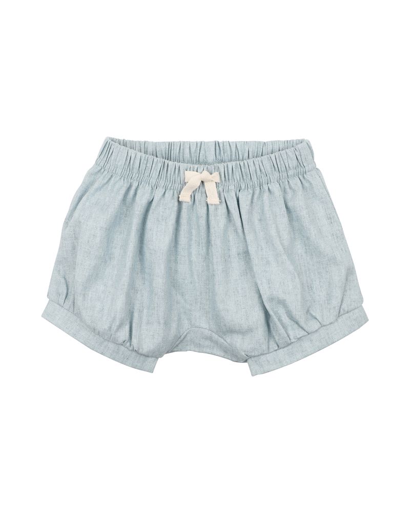 These blue linen blend woven shorts feature an elasticised waist for comfort and ease of dressing with a mock tie and leg cuffs. A great basic for your little one’s wardrobe.