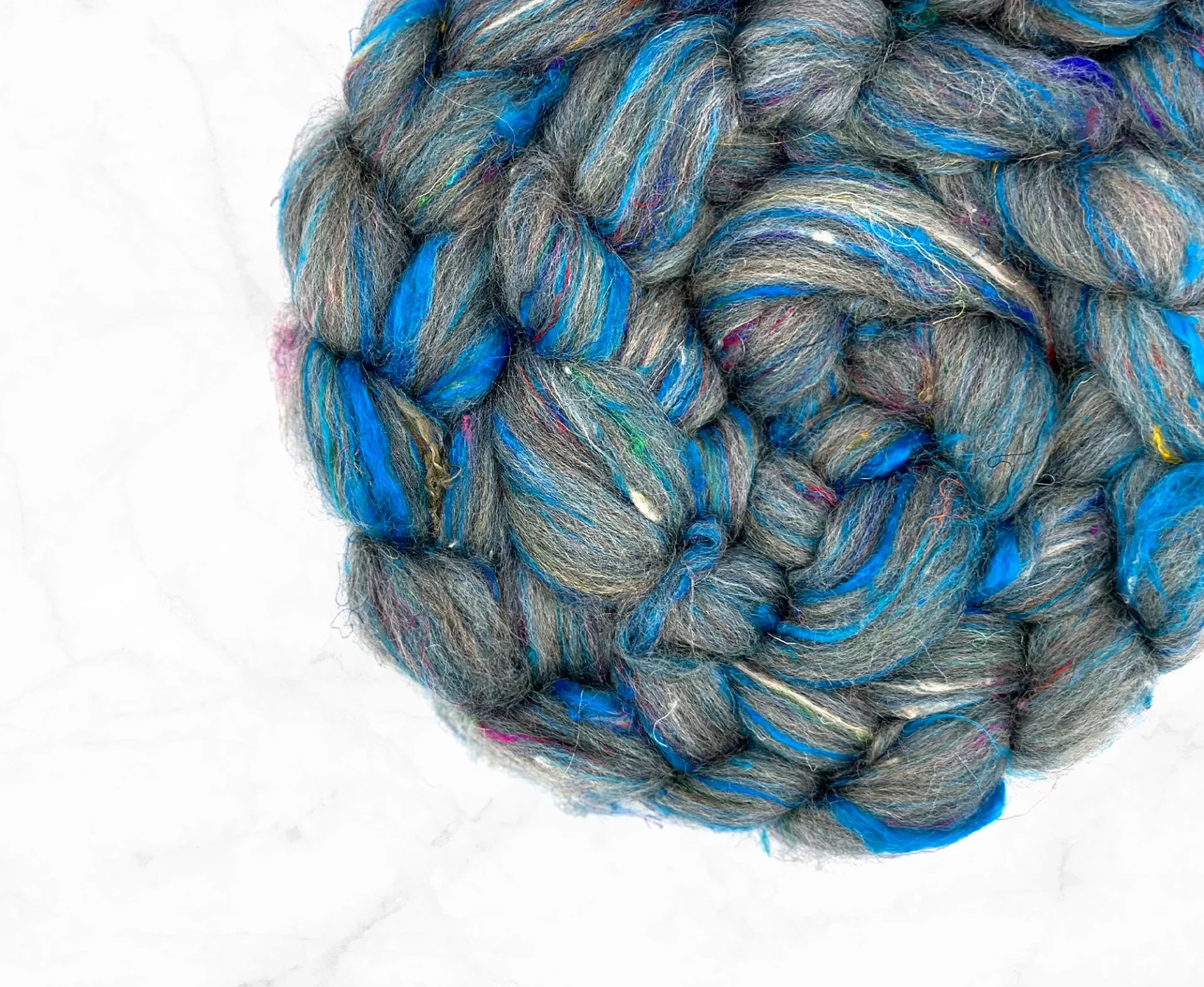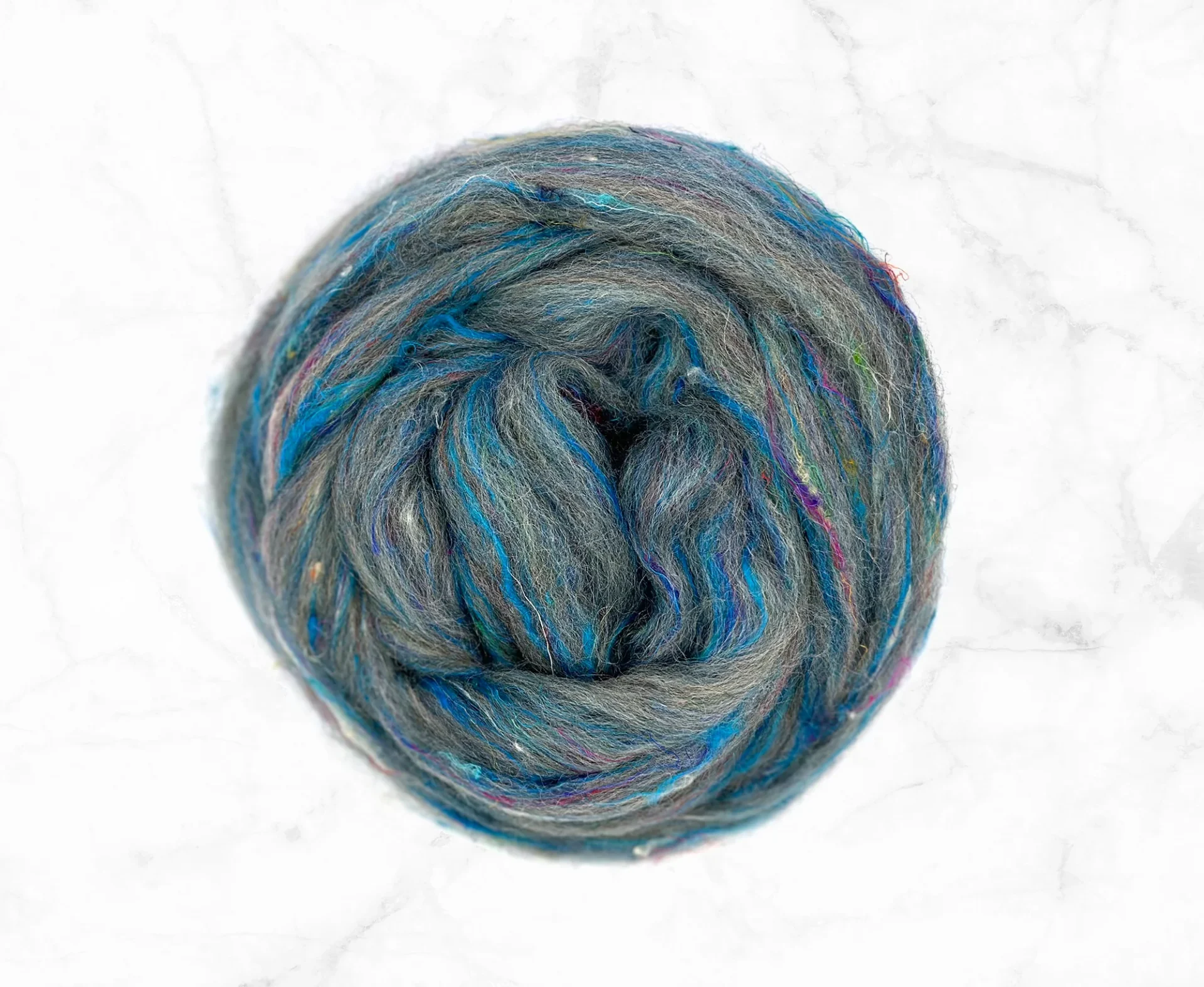 Blue Faced Leicester, Sari Silk & Glitzy Roving 100g – Midouze