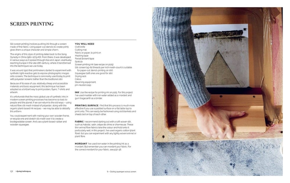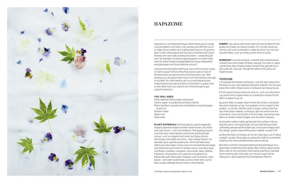 Learn how to transform foraged wild plants, plants, garden produce, and recycled food into dyes and inks with Botanical Inks. The book shows you how to extract environmentally sustainable color from the landscape and use it to create natural dyes for textiles, clothing, paper, and other materials. Botanical Inks covers dyeing and surface application techniques, including bundle dyeing, Shibori tie-dyeing, hapazome, indigo sugar vat dyeing, wood-block printing, screen printing, and more. It also shows you how to turn your new inks, dyes, and technique knowledge into wonderful projects, from a simple bundle-dyed a scarf to a block-printed tote bag.