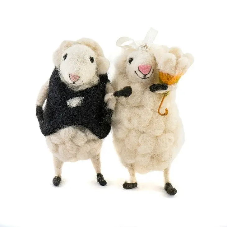 Bride and Groom Sheep are part of the wedding collection and make an adorable wedding gift! Each Sew Heart Felt sheep is skilfully crafted by needle felting teeny layers of loose wool fibres, creating a sculptured and realistic little animal.