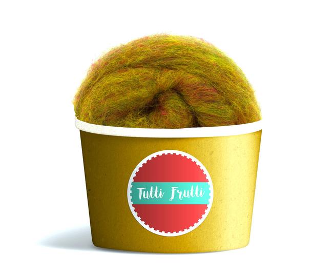Fruity and Funky! The Tutti Frutti range is produced from Corriedale Fleece 29/30 Micron. Carefully blending and carding different percentages of different colours to create unique individual tones. Perfect for 3D needle felting, wet felting and spinning.