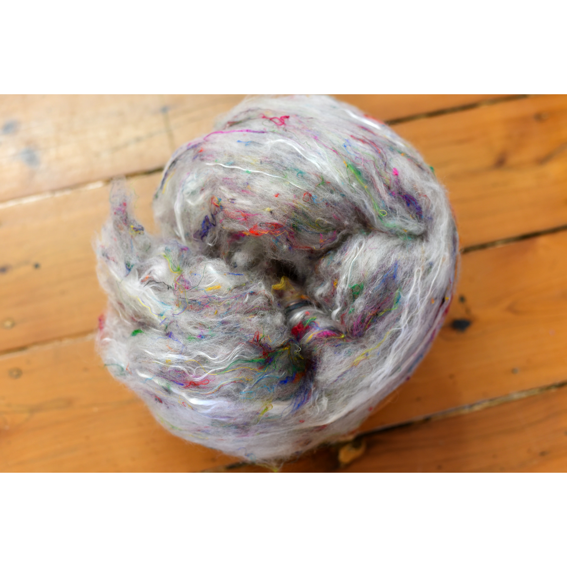 A blend of 70% 22 micron merino and 25% sari silk & mulberry silk.