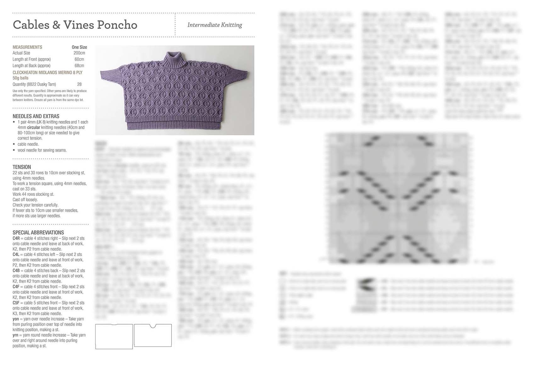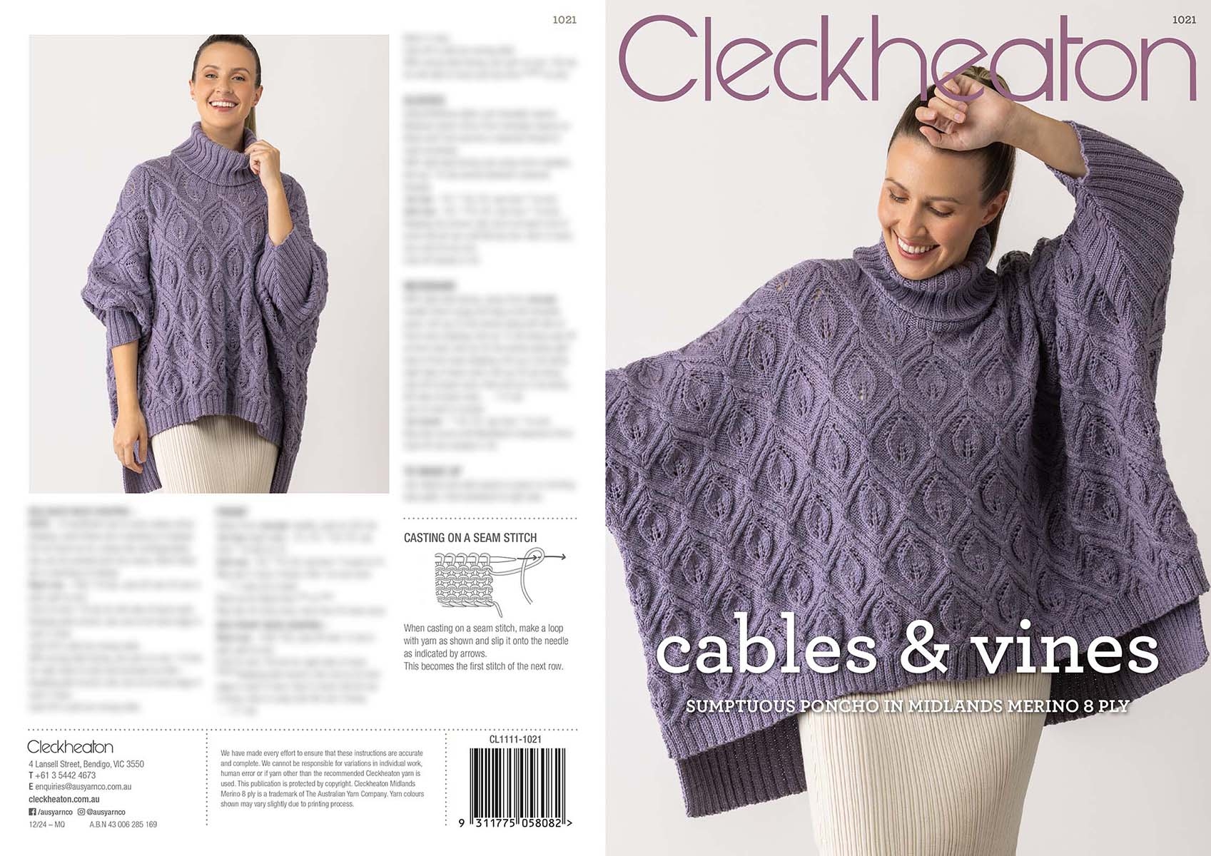 Sumptuous poncho featuring intertwining leaf and lace pattern using Cleckheaton Midlands Merino 8 ply.