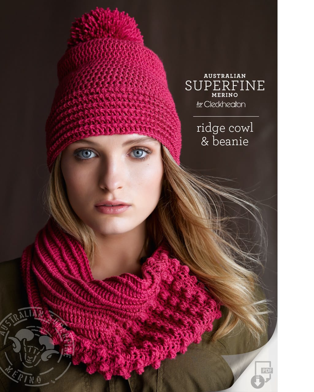 Winter favourites get an update. The slouchy beanie and short cowl show off textured crochet stitches beautifully, combining ridge, treble and blackberry stitches. Raspberry and Peacock provide a refreshing colour pop for winter.