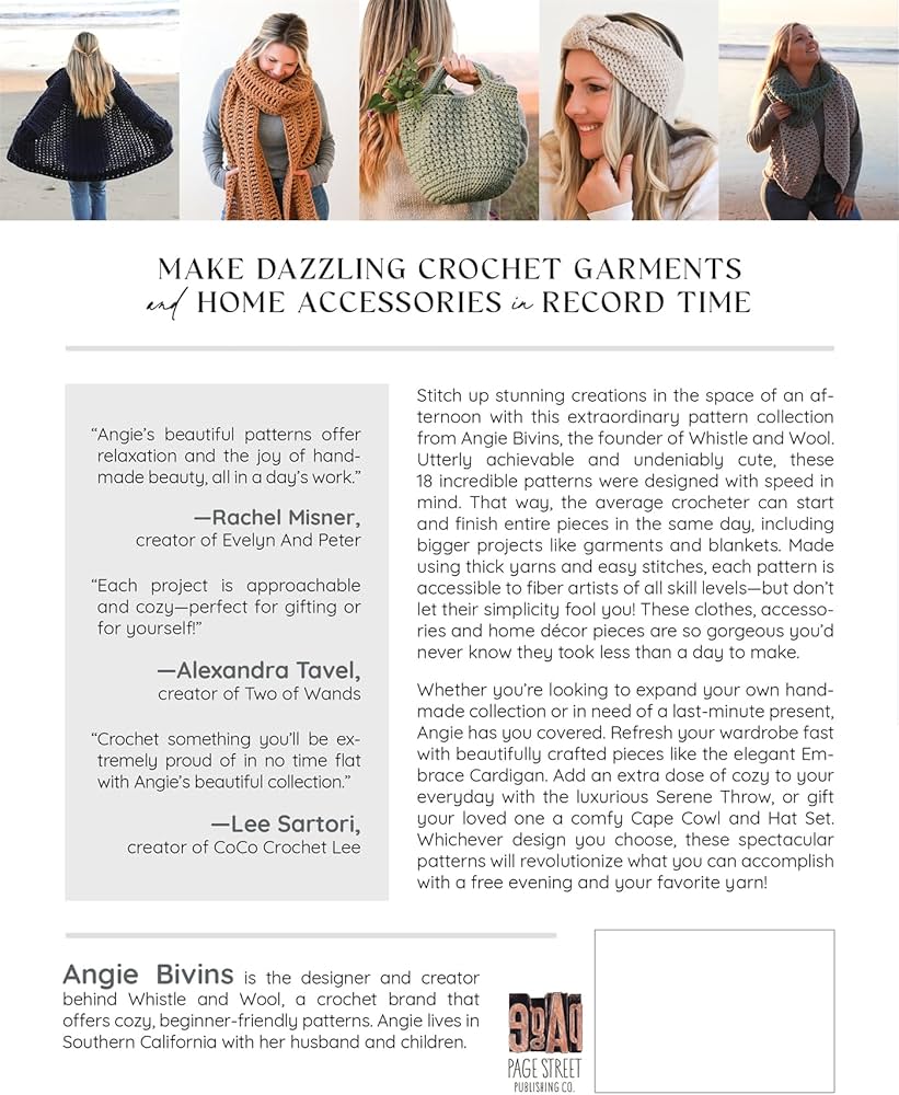 Stitch up stunning creations in the space of an afternoon with this extraordinary pattern collection from Angie Bivins, the founder of Whistle and Wool. Utterly achievable and undeniably cute, these 18 incredible patterns were designed with speed in mind. That way, the average crocheter can start and finish entire pieces in the same day, including bigger projects like garments and blankets. Made using thick yarns and easy stitches, each pattern is accessible to fiber artists of all skill levels—but don’t let their simplicity fool you! These clothes, accessories and home décor pieces are so gorgeous you’d never know they took less than a day to make.