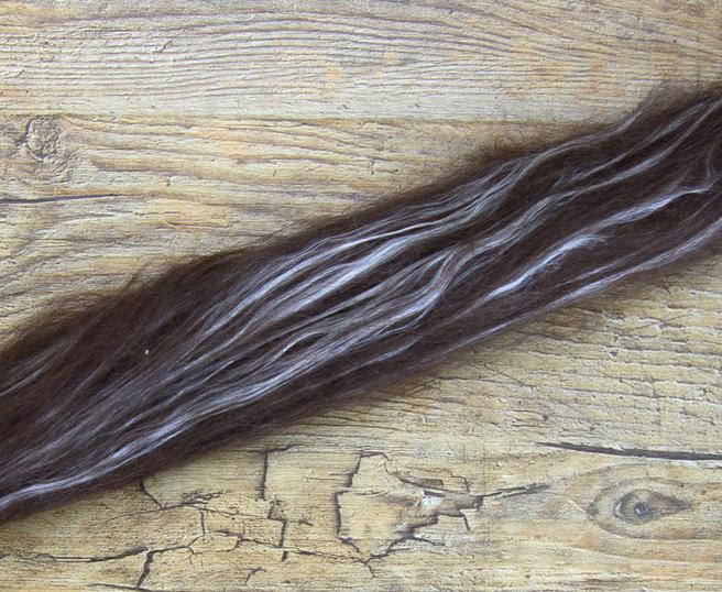 Dark Brown Alpaca & Bleached Tussah Silk Roving 100g