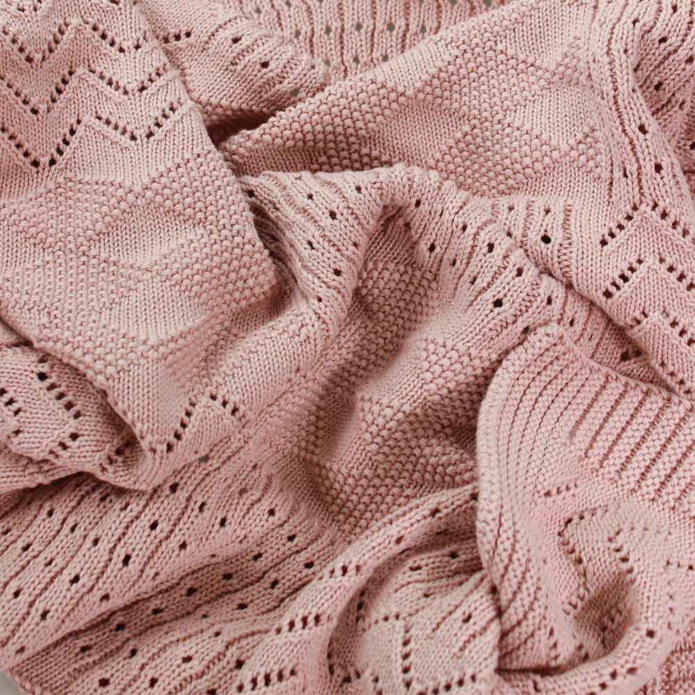 Multi pattern knitted pure cotton baby stroller blanket with rib edges.