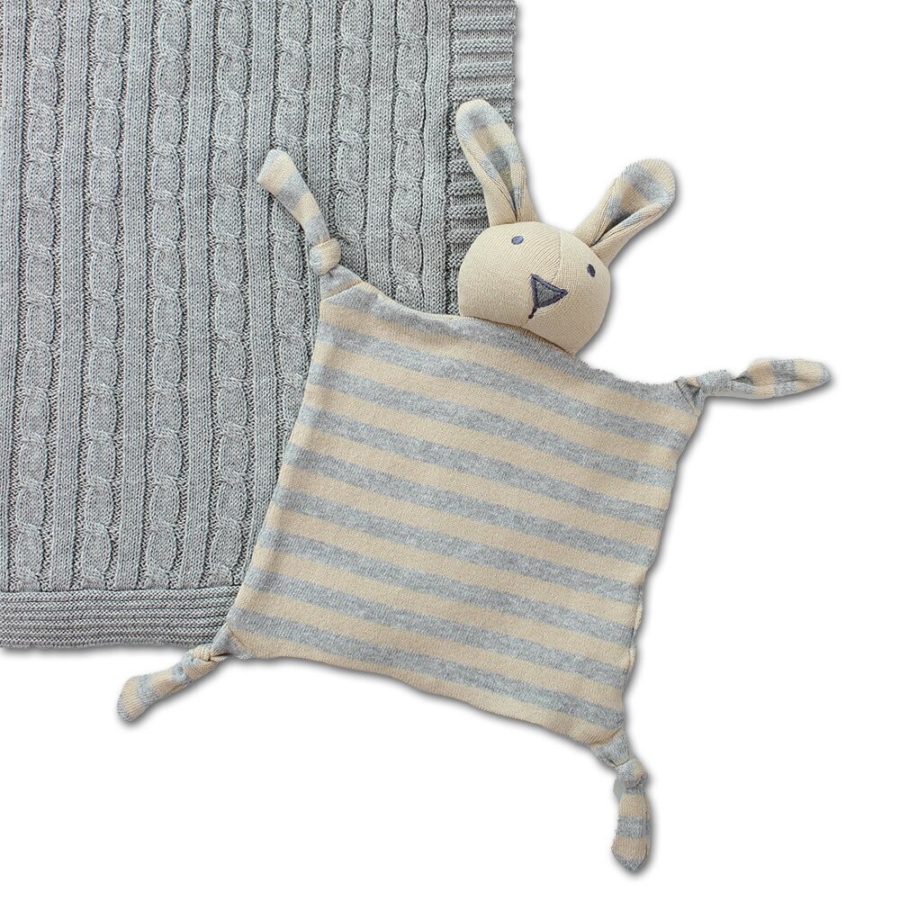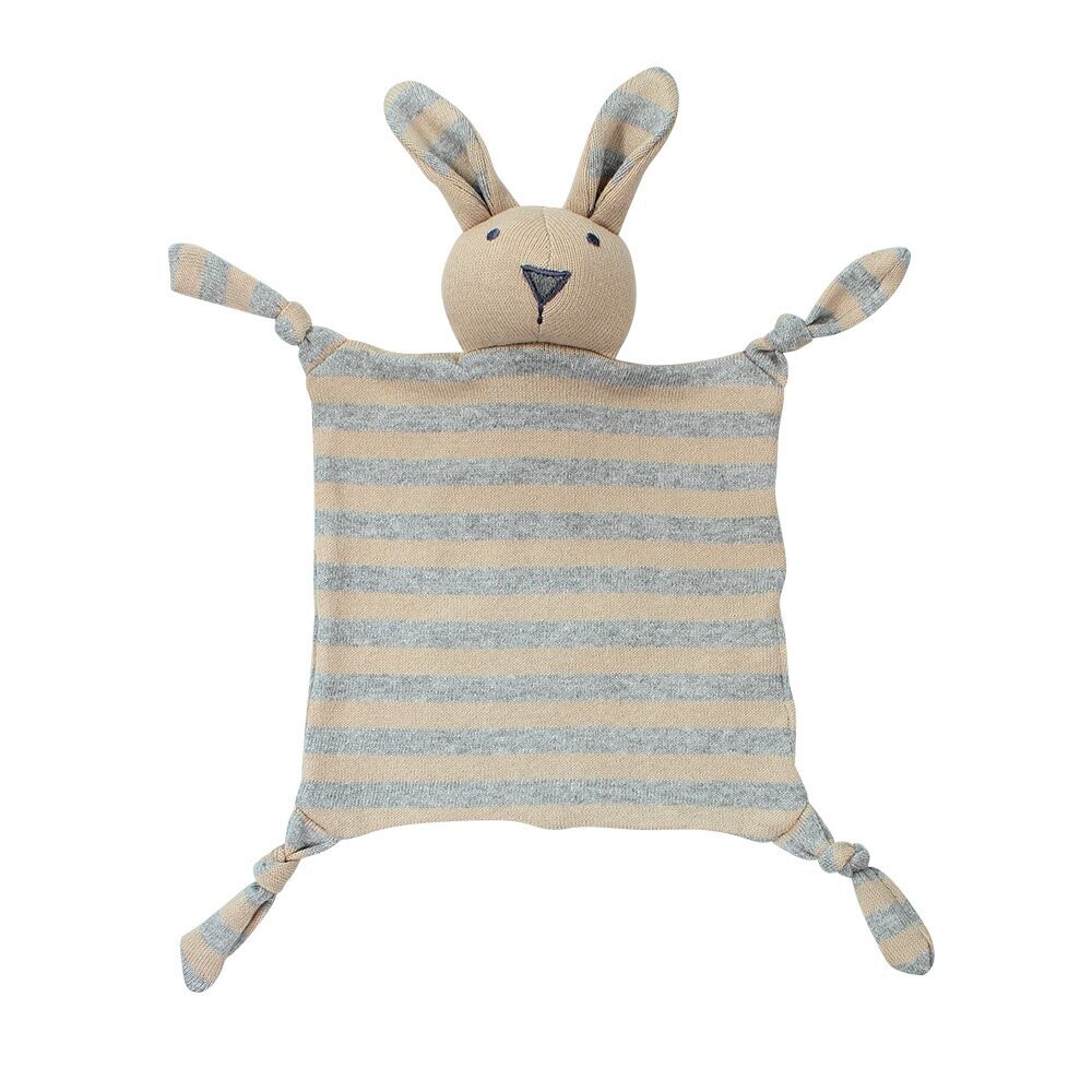 Little bunny comforter is the perfect gift for baby. Made from OEKO – Tex cotton yarns , it is soft and comforting for little hands to hold. It has an embroidered face, long ears and a gentle rattle sound.