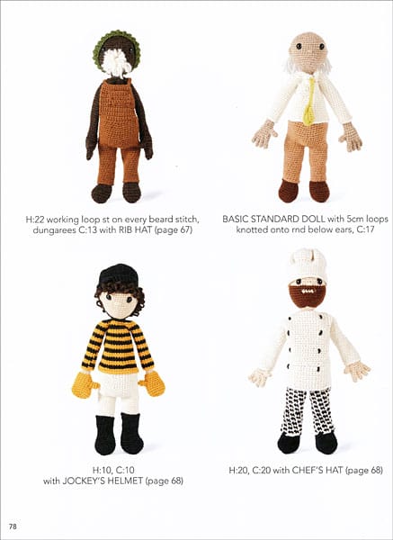 Building up from the basic body, add hairstyles, hats, outfits and accessories to capture your family, friends and favourite people in crochet form. The flippable pages make it easy to follow the patterns in any combination. You could make a countless number of different dolls, or you could make one doll with an extraordinary wardrobe.