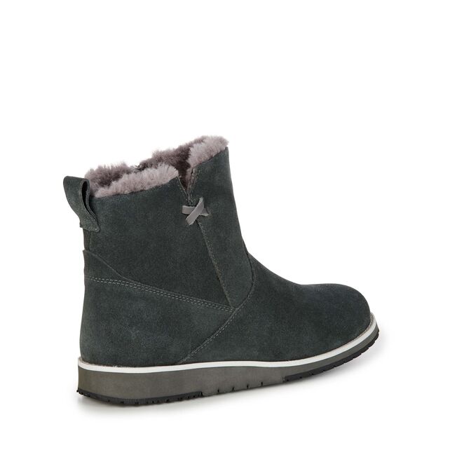 The EMU Australia Beach Mini is a comfortable yet stylish, women’s suede ankle boot lined with Australian Merino wool to keep feet warm all year round. A medial size zip allows easy access into the slim silhouette, while the memory foam footbed and soft wedge midsole offers comfort and cushioning all day.