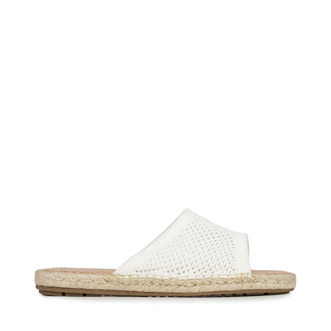 The Ebor Mac is a summer slide inspired by the classic espadrille, made from breathable knitted cotton and featuring a natural cork footbed.