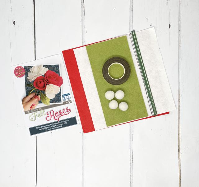 Wool mix felt fabric, florist stems, florist tape, step by step colour instructions and templates.