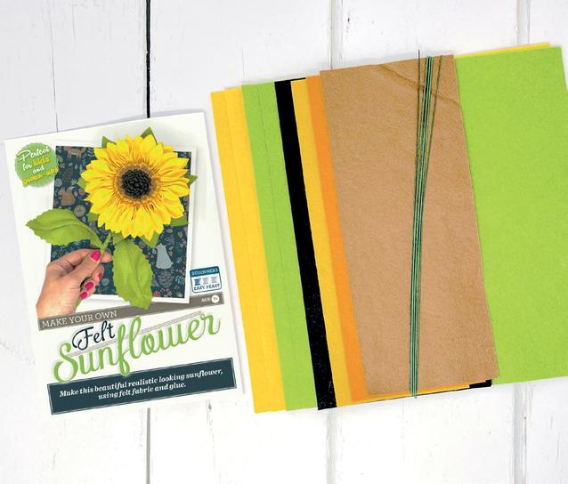 The Crafty Kit Company’s Felt Sunflower Craft Kit contains materials to make a truly realistic looking everlasting flower! This kit is suitable for beginners, and includes wool mix felt fabric, florist stems, florist tape, step by step colour instructions and templates. Finished size approximately 17 x 30cm.