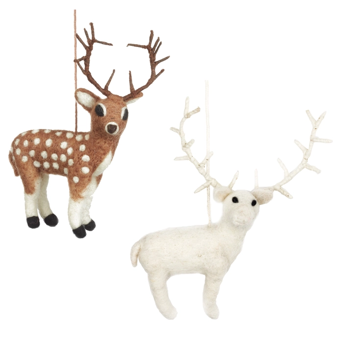 This majestic creature is the undisputed King of the forest. Choose the brown for your natural woodland display, or the white for a whimsical winter vibe. Handmade entirely by traditional needle felting techniques, with string wrapped wire for those proud antlers and hand stitched detailing for those adorable little faces.