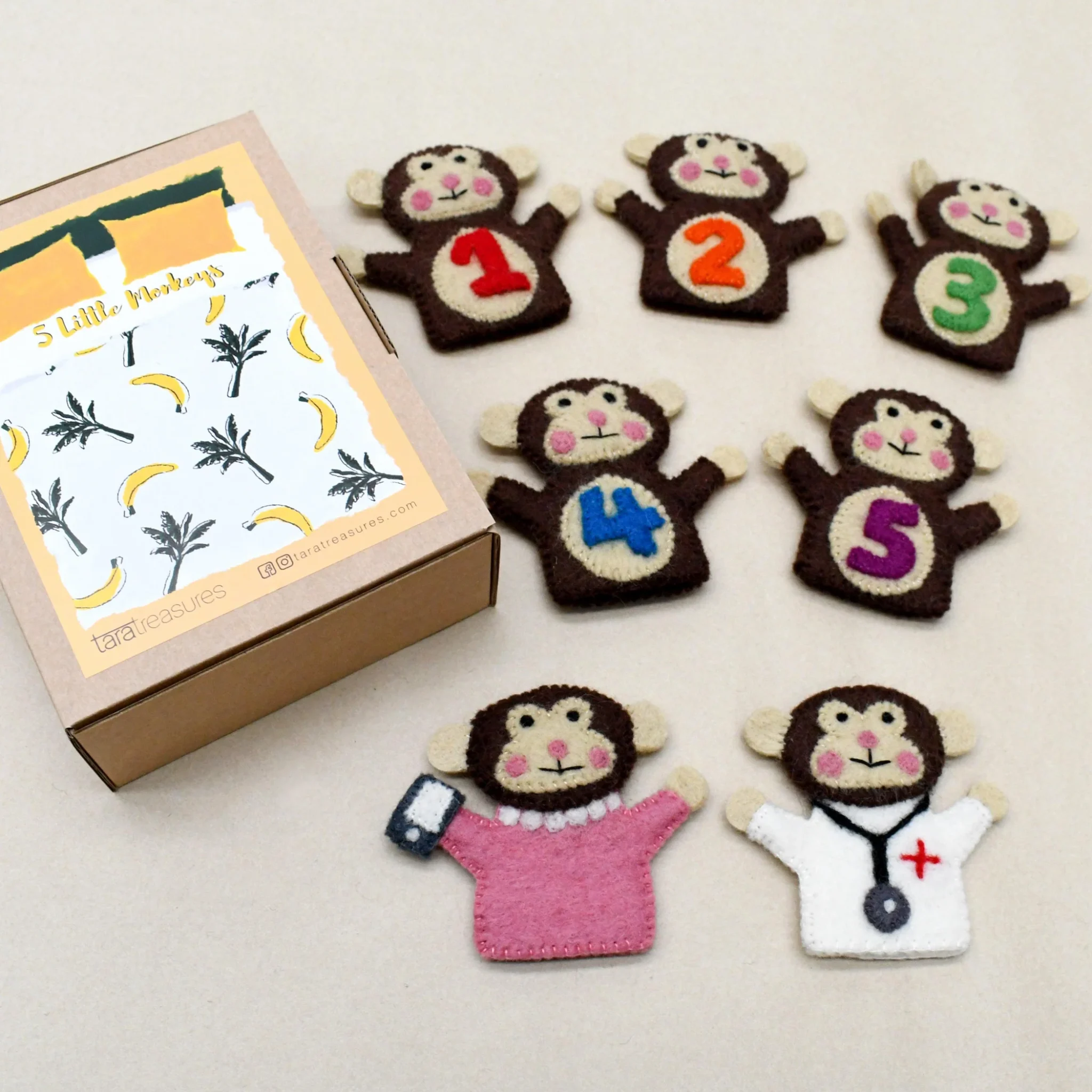 Five Little Monkeys Wool Finger Puppet Set