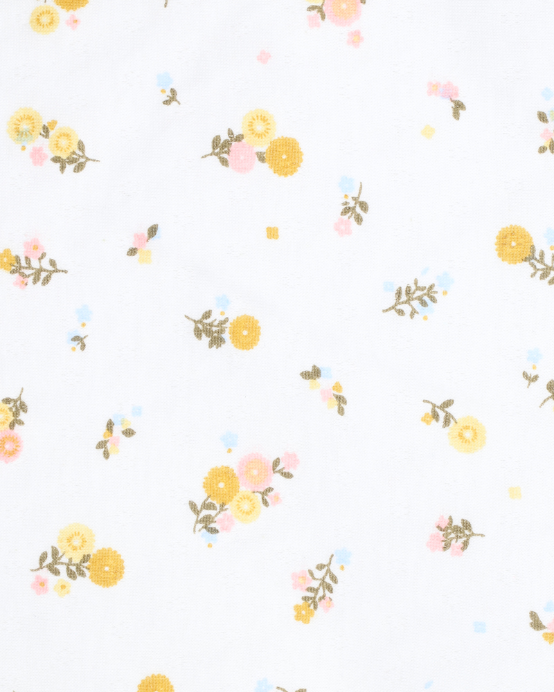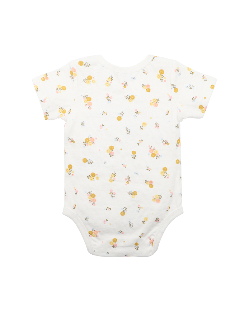 This sweet pointelle jersey ditsy dandelion print bodysuit with short sleeves features contrast binding, a shoulder press stud opening and a press stud crotch opening for ease of dressing your little one. A great basic for your little one’s Summer wardrobe.