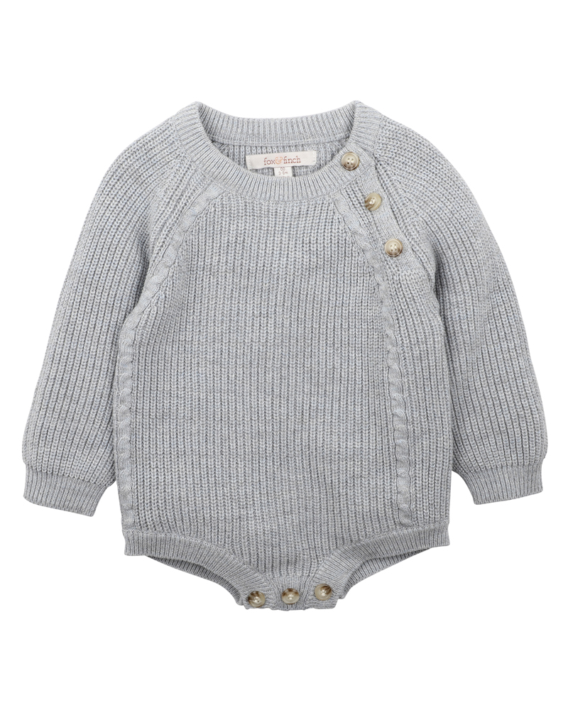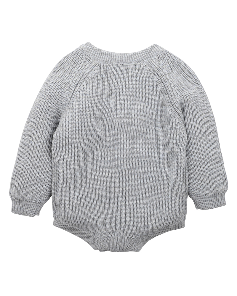 This gorgeous fisherman’s rib knitted romper features a side front neck and crotch button opening and is a classic piece for your little one’s winter wardrobe.