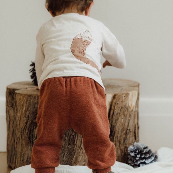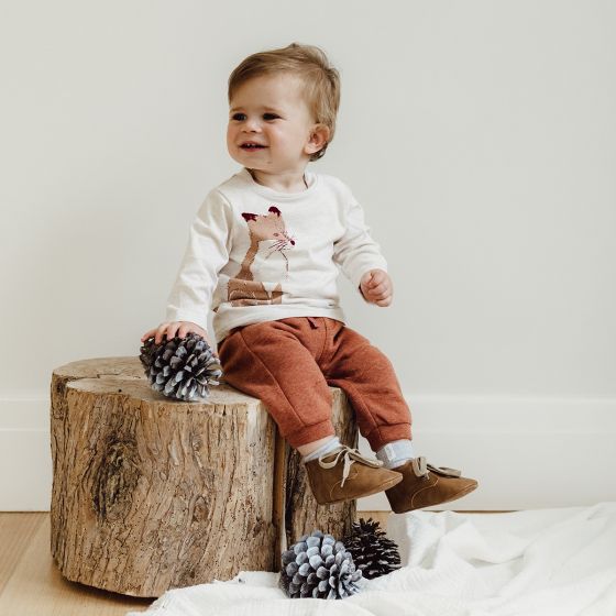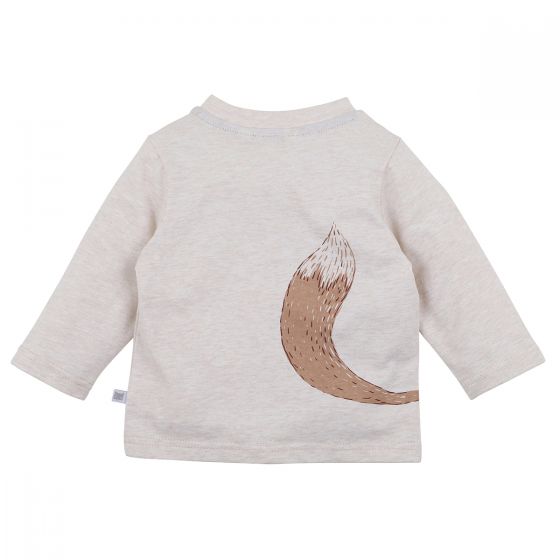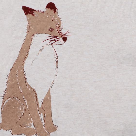 This long sleeve oat marl tee features a sitting fox printed graphic on the side front with his bushy tail wrapping round the back and has a shoulder button opening for easy dressing, making it the perfect piece for winter layering.