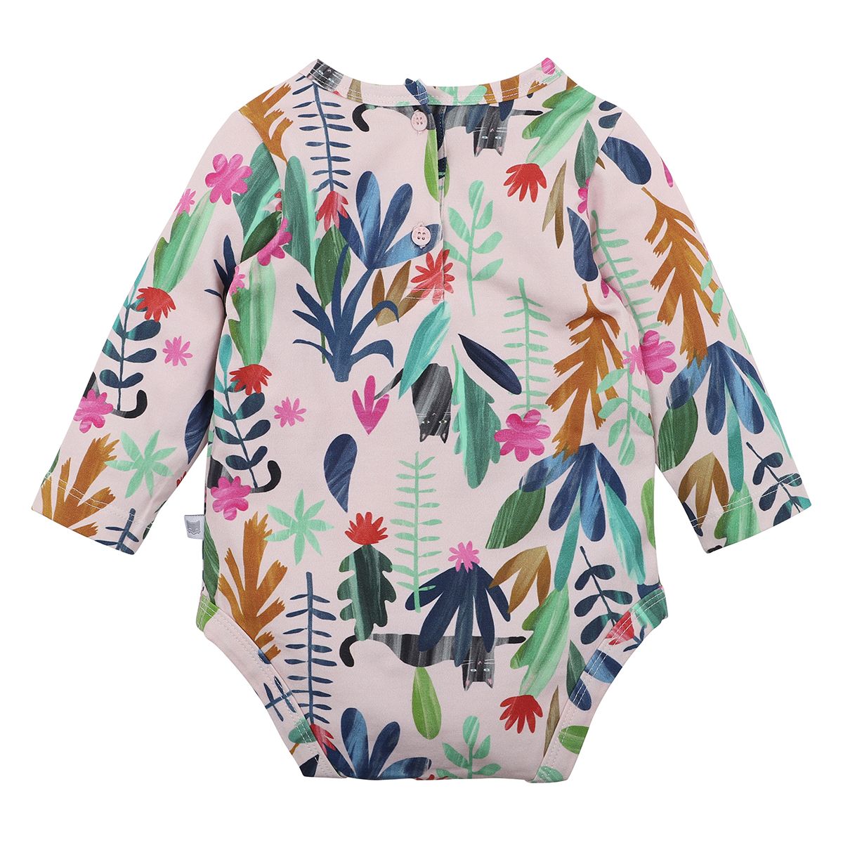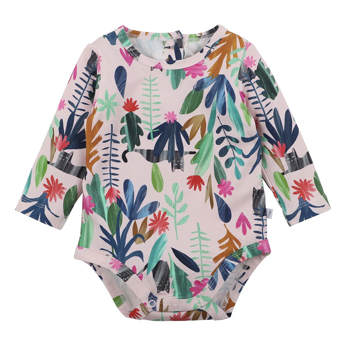 This gorgeous bold jungle cat bodysuit features a back neck button opening and press stud crotch closure for ease of dressing.