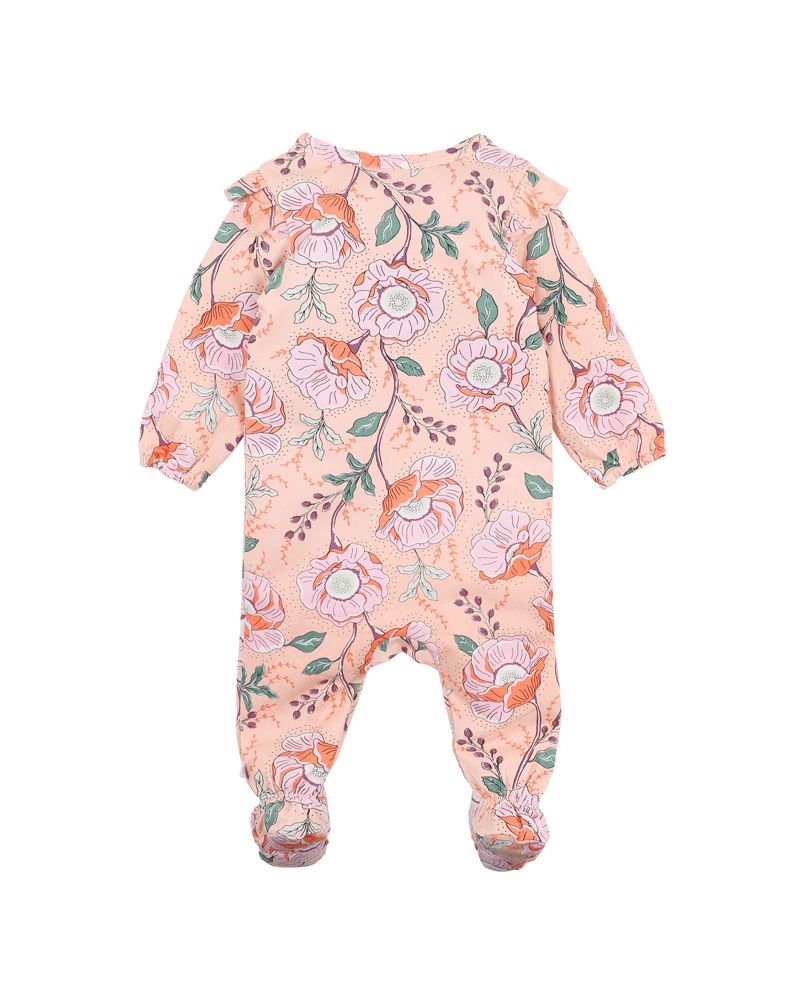 This sweet poppy print long sleeve romper featuring shoulder frills and a front zip opening for ease of dressing your little one is the perfect romper for keeping your little one comfortable and stylish this winter.