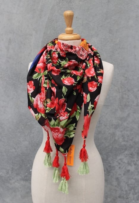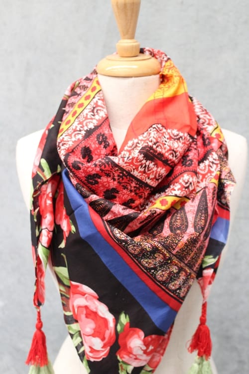 Fringe Tassel Square Scarf – Rose Print