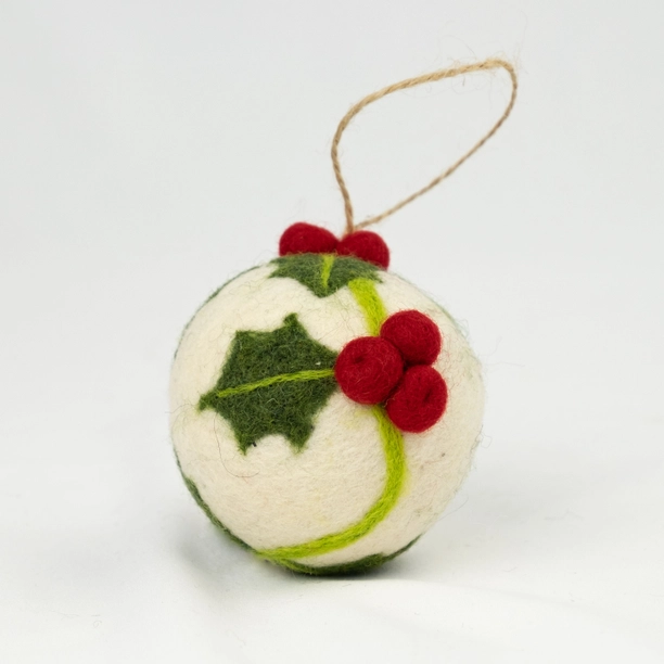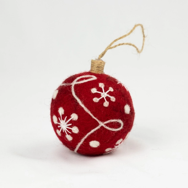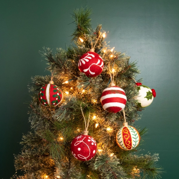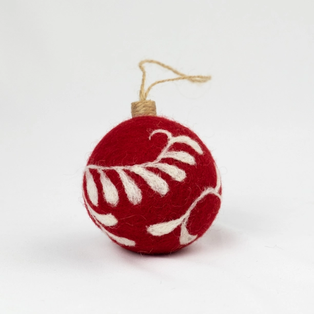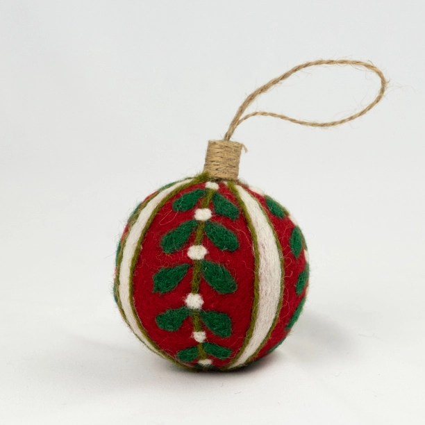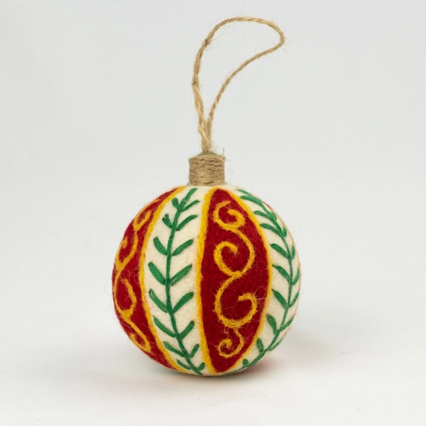 These handcrafted wool bauble ornaments feature beautiful hand embroidery, making them perfect for decorating your Christmas tree or giving as a thoughtful holiday gift. These wool baubles are a sustainable alternative to plastic ones, reducing microplastic pollution from glitter.