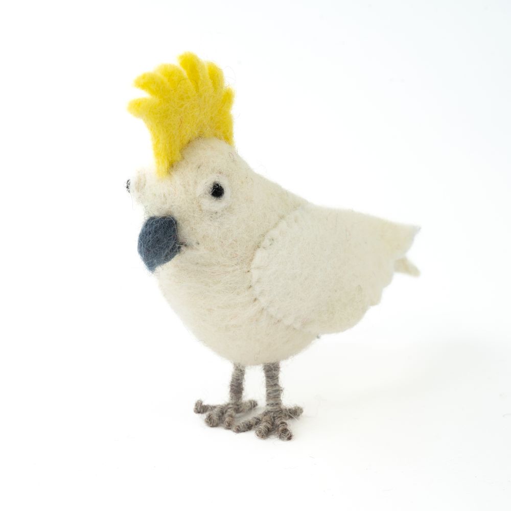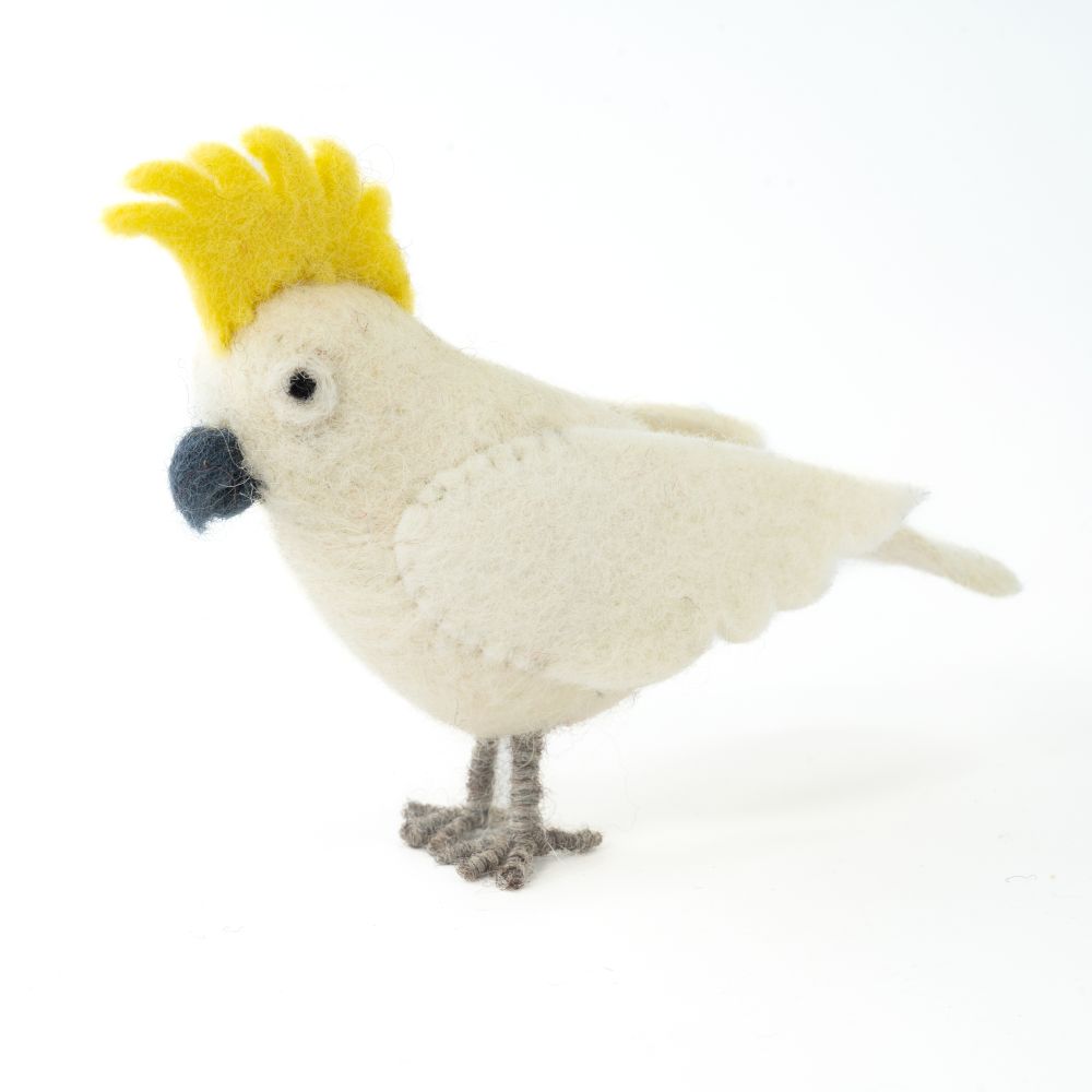 Handmade Felted Wool Sulphur-Crested Cockatoo