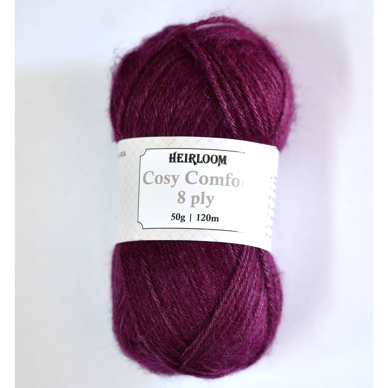 Heirloom Cosy Comfort 8 ply is a luxurious, lightly brushed blend of wool, silk and alpaca, combining delicious loftiness with Aussie made charm.