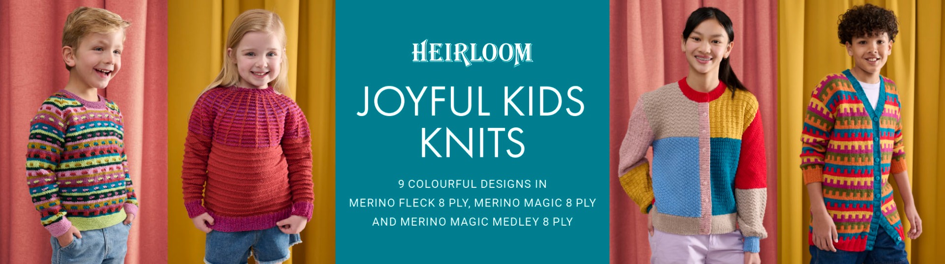 9 colourful designs in Merino Fleck 8 ply, Merino Magic 8 ply and Merino Magic Medley 8 ply.