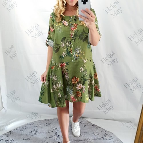 Helga May Botanical Button Tunic Dress – Green