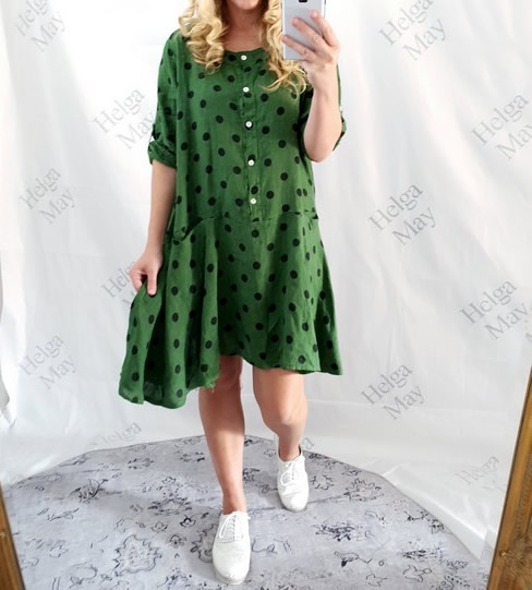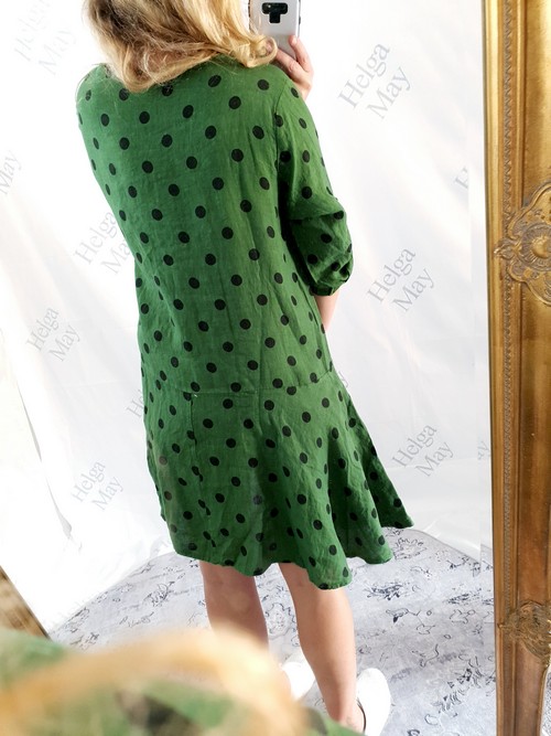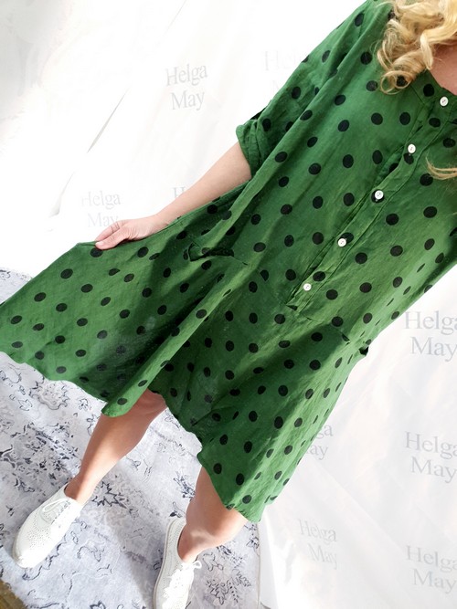 Helga May Linen Polka Dot Dress – Green
