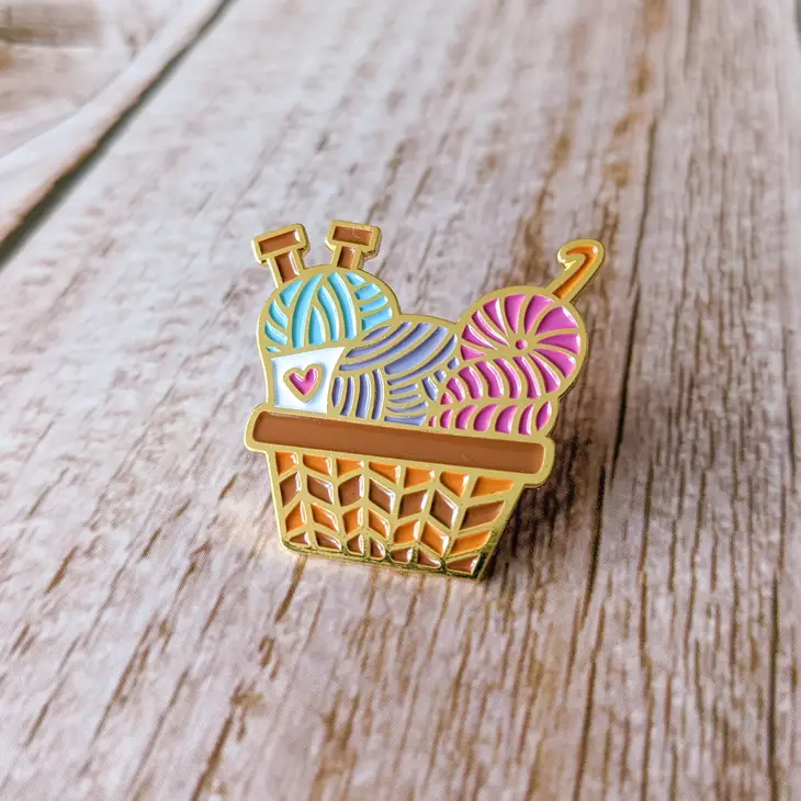 Hello Kim Knitting Crochet Yarn Basket Pin
