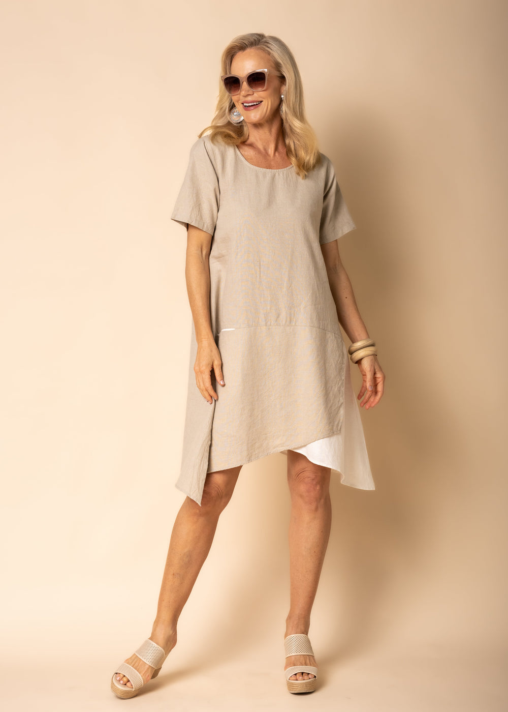 Imagine Fashion Halsey Linen Cotton Dress Latte