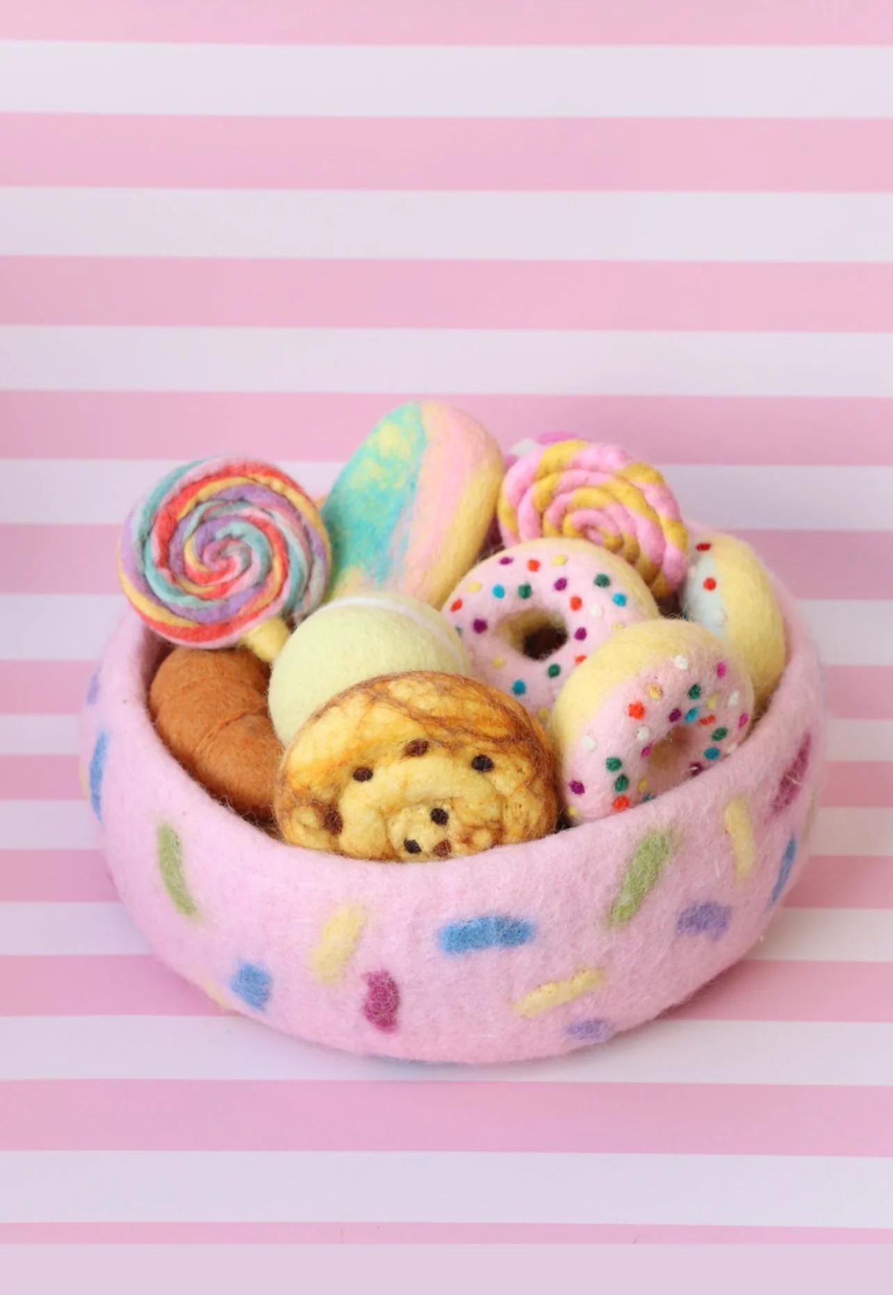 Each of our sprinkles baskets has been carefully hand crafted using highly skilled needle felting techniques and can store approx 15-20 felt treats inside