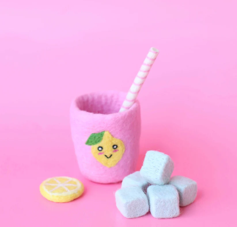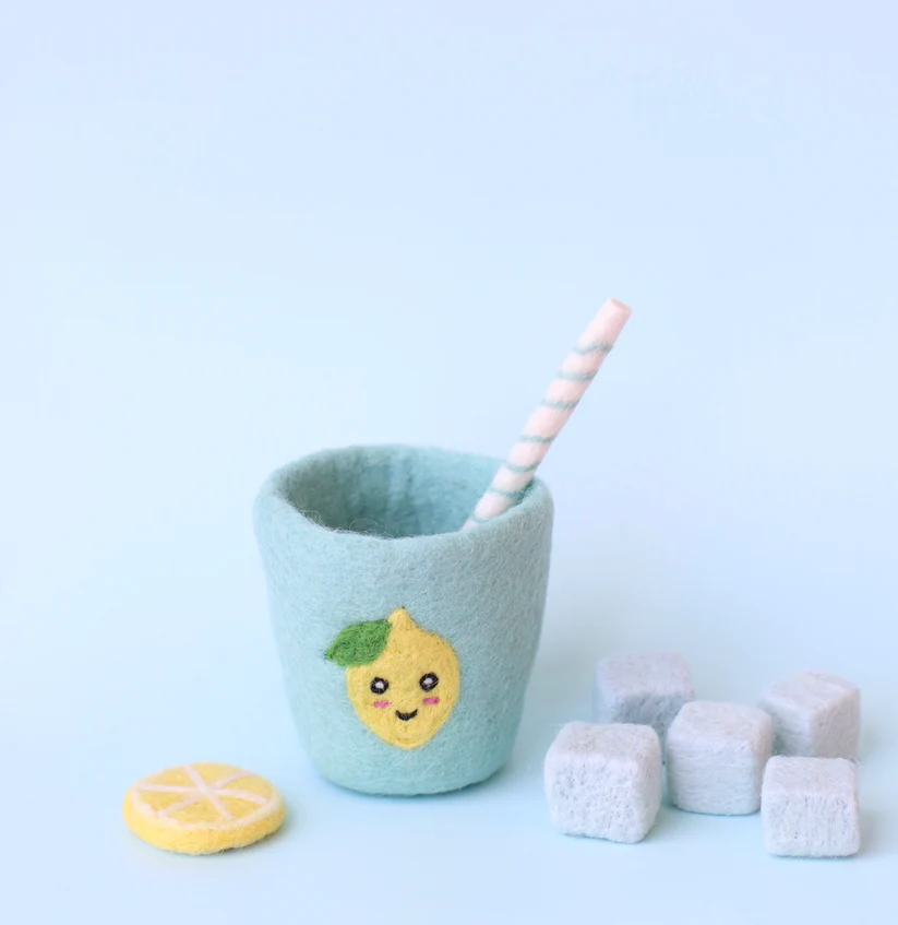 Quench your thirst with our new Juni Moon ‘let’s make lemonade’ felt drink 8-piece set! Perfect for little entrepreneurs, this set includes everything your child needs to make their very own homemade lemonade. The set includes one cup, one straw, one lemon slice and 5 ice blocks.