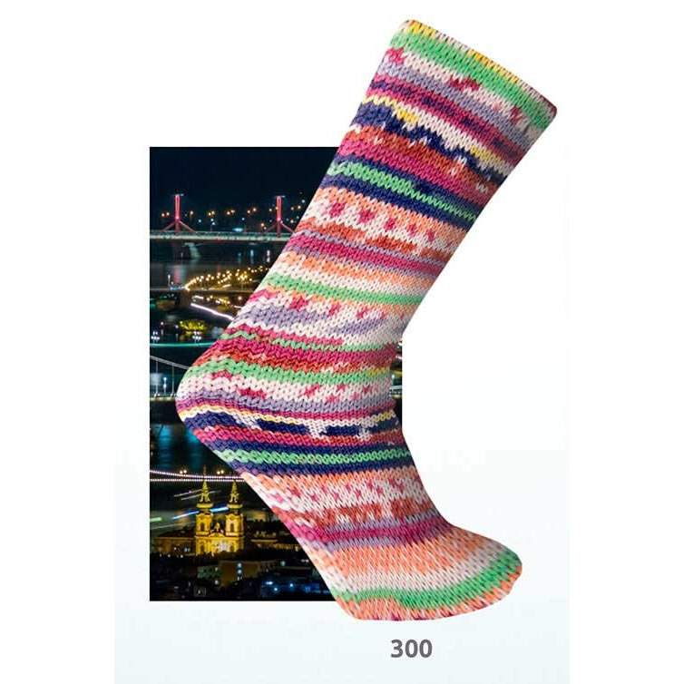 If you are passionate about knitting socks, add color to your feet with a ball of Danubio Socks, 100 grams of 4-ply multicolor yarn. Combine the colorful Danubio Socks print with the solid United Socks colors to knit your own sock designs.