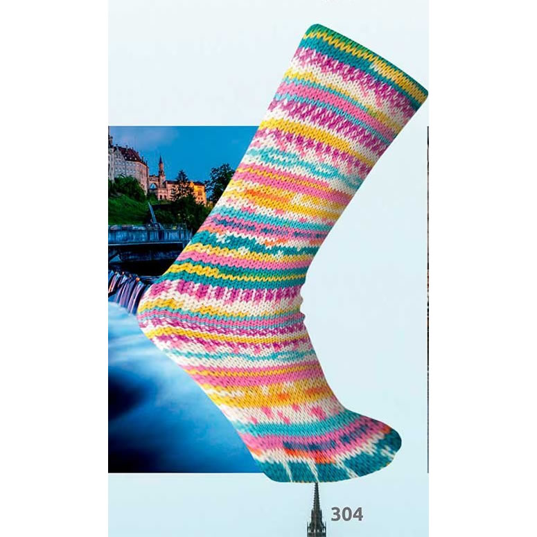If you are passionate about knitting socks, add color to your feet with a ball of Danubio Socks, 100 grams of 4-ply multicolor yarn. Combine the colorful Danubio Socks print with the solid United Socks colors to knit your own sock designs.