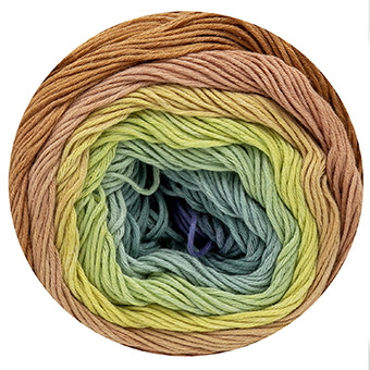 A lightweight perfect colour cycle yarn in 100% cotton. Colourways have been carefully selected to create stunning and elegant combinations. Chose from a range of 6 different colourways including both soft and more intense colours options. Knit or crochet a beautiful shawl for cool summer nights, or a cool, comfortable girl’s top using only one ball of yarn.