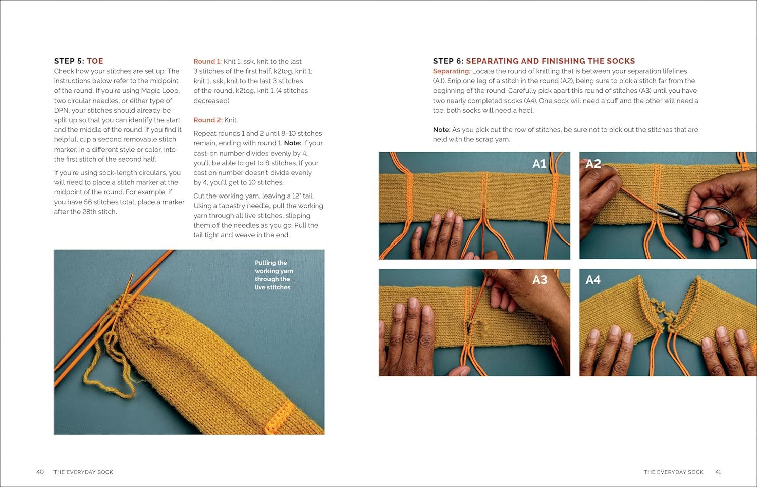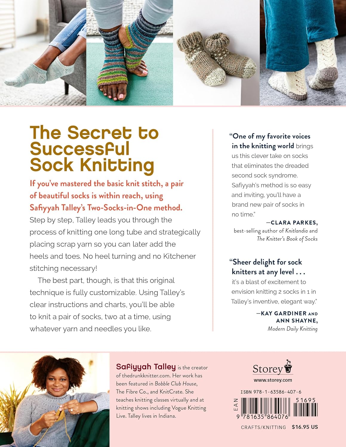 Socks continue to be a favorite project of knitters, but single sock syndrome losing interest in knitting that second sock after the first one is done is the perpetual dilemma. Knit 2 Socks in 1 introduces a distinctive new method that will appeal to sock knitters of all levels as the simplest, most accessible way yet developed to knit two socks at a time. This innovative technique begins with making the first sock s cuff. The knitter can then relax and knit a long tube, which makes up the main body of both socks. With the help of a lifeline (scrap yarn that is threaded through stitches to hold them in place), the knitter can easily separate the long tube into two socks. The heels and toes are worked with a simple two-row repeat and are finished with a hat closure, a novice knitting technique often used to close the tops of hats. Much like choosing an alternate ending in a classic Choose Your Own Adventure book, the knitter can choose from 21 different sock styles, featuring a wide range of stitch patterns, design elements, levels of difficulty, and sizes ranging from child to adult. Knit 2 Socks in 1 is a tried-and-true sock-knitting technique that allows knitters from all backgrounds to join in on the fun.