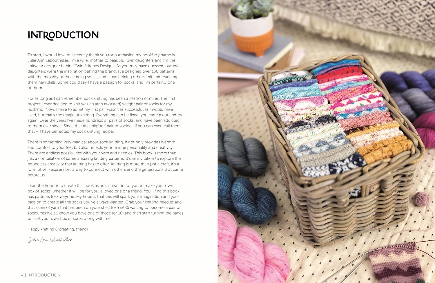 Every knitter dreams of having a perfectly curated box of socks that holds all of their gorgeous handmade creations. Julie Ann Lebouthillier has created 24 incredible sock knitting patterns that are perfect for you to knit for yourself, friends and family to create the perfect box of socks.