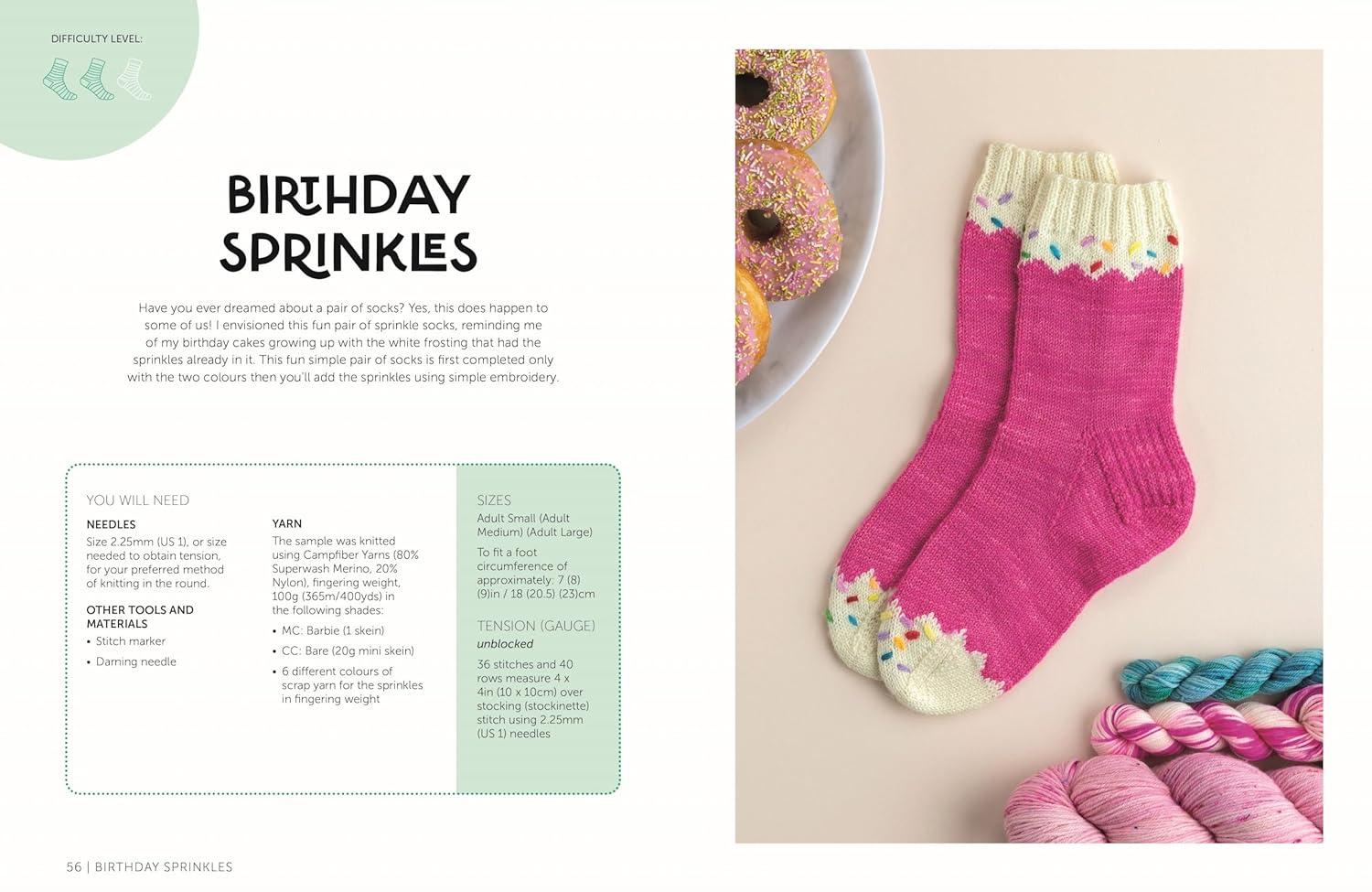 This collection of fun sock designs is based on the idea of a hand knitted ‘box of socks’. This is the ultimate guide for knitters who want to create their own box of socks, packed with 24 original patterns for a wide range of different sock designs.