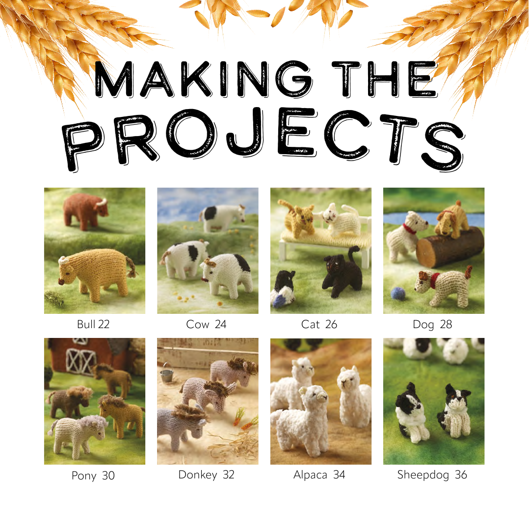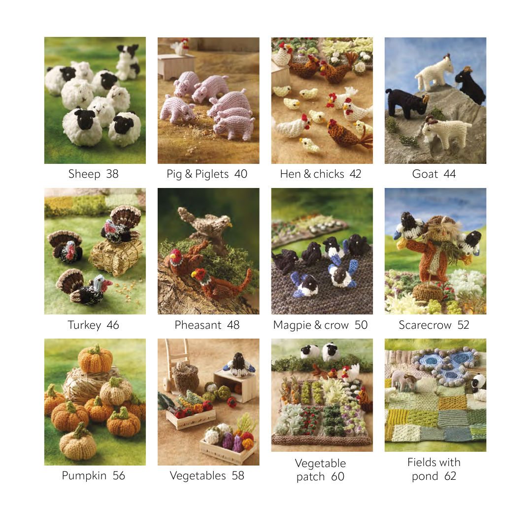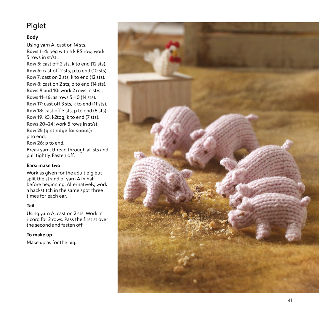 Knit 20 tiny, adorable farmyard favourites, from cheeky piglets and bustling chickens to a loyal sheepdog and your very own scarecrow.