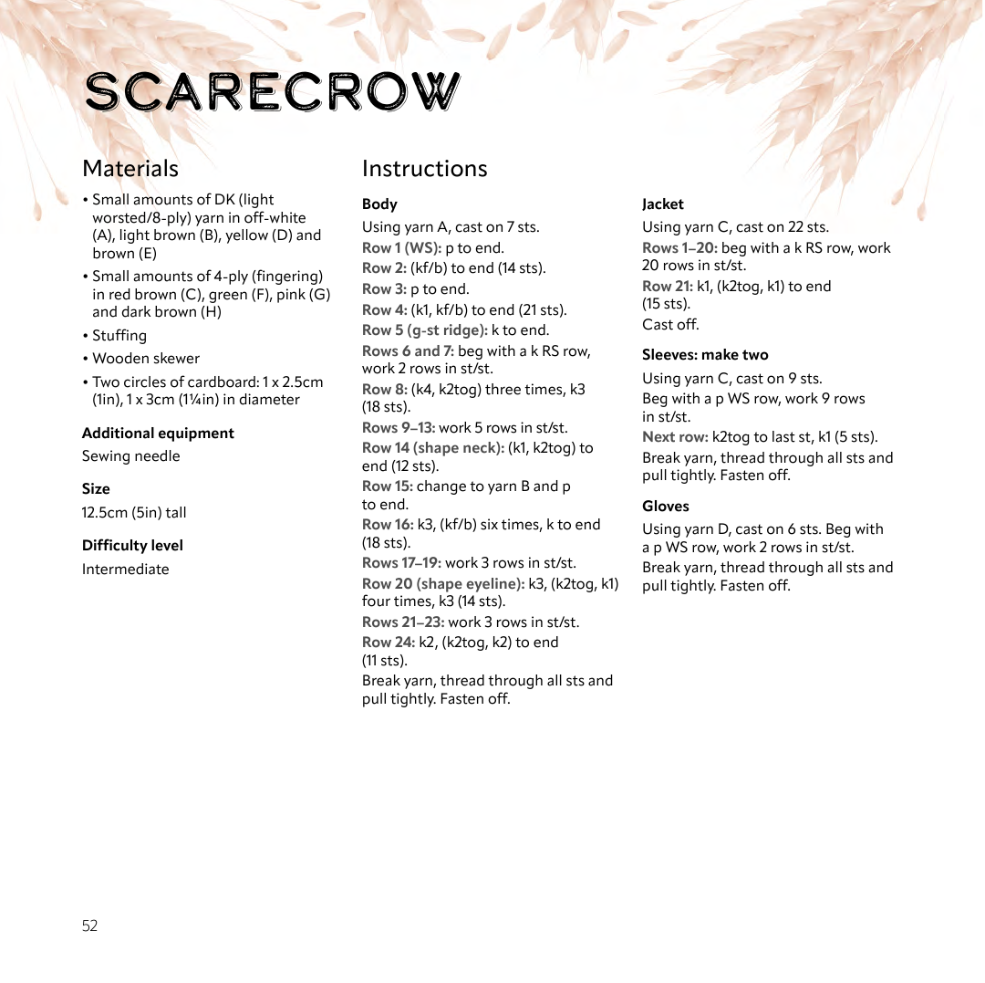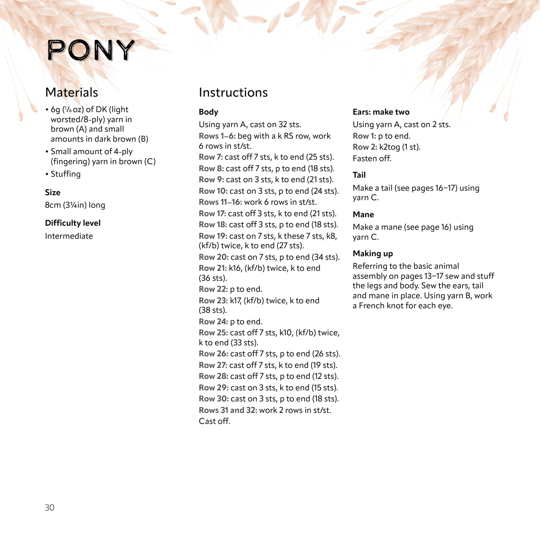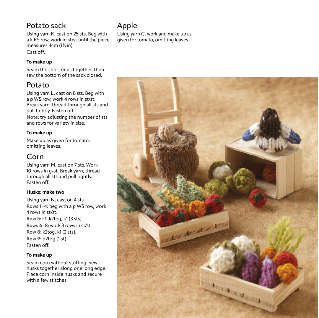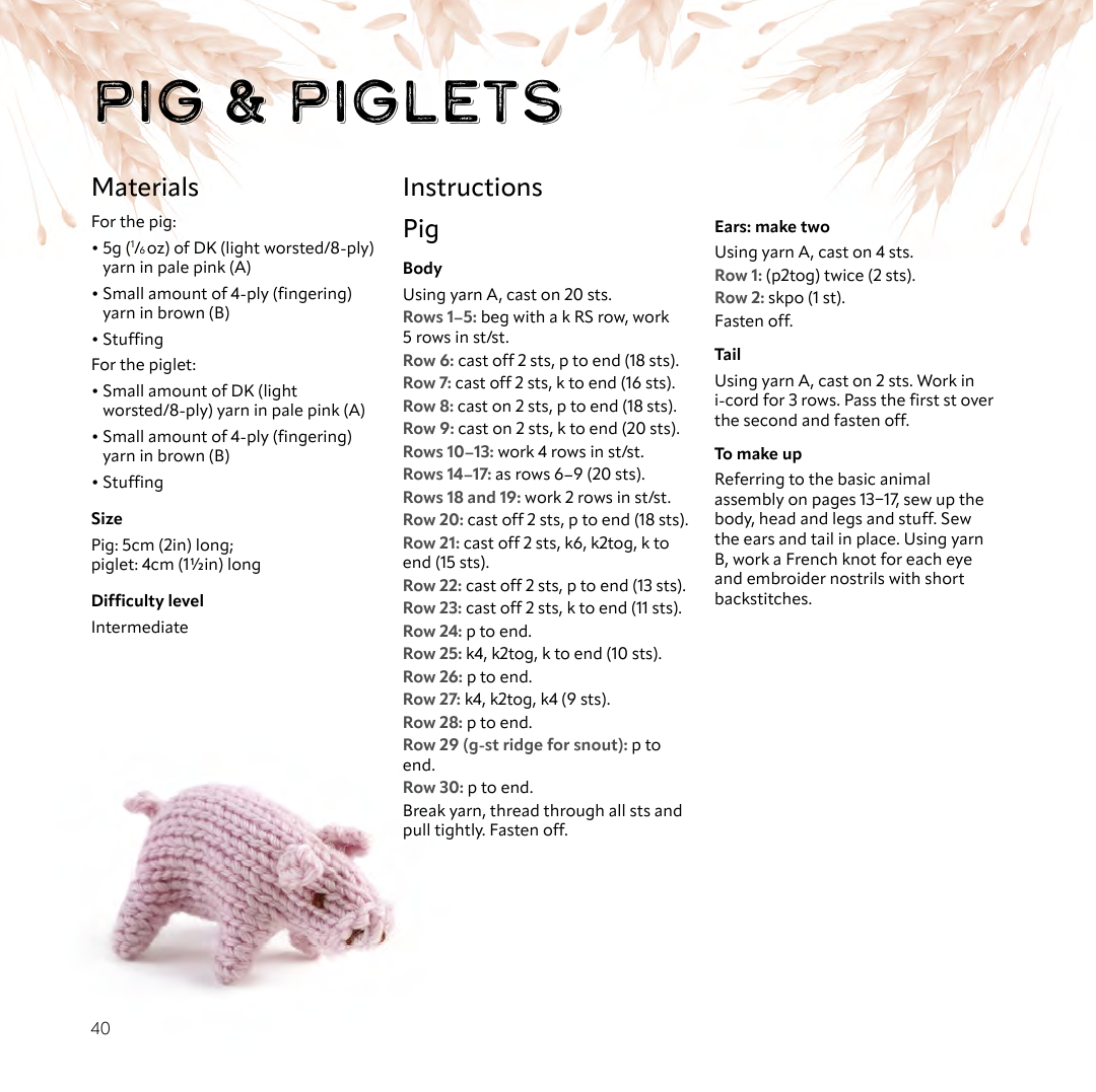Knit 20 tiny, adorable farmyard favourites, from cheeky piglets and bustling chickens to a loyal sheepdog and your very own scarecrow.